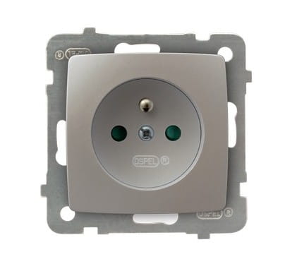 Standardowe gniazdo elektryczne z bolcem uziemiającym wyposażone w przesłony torów prądowych. Do kompletu wymagana ramka. Można stosować do systemów ramkowych wielokrotnych.
