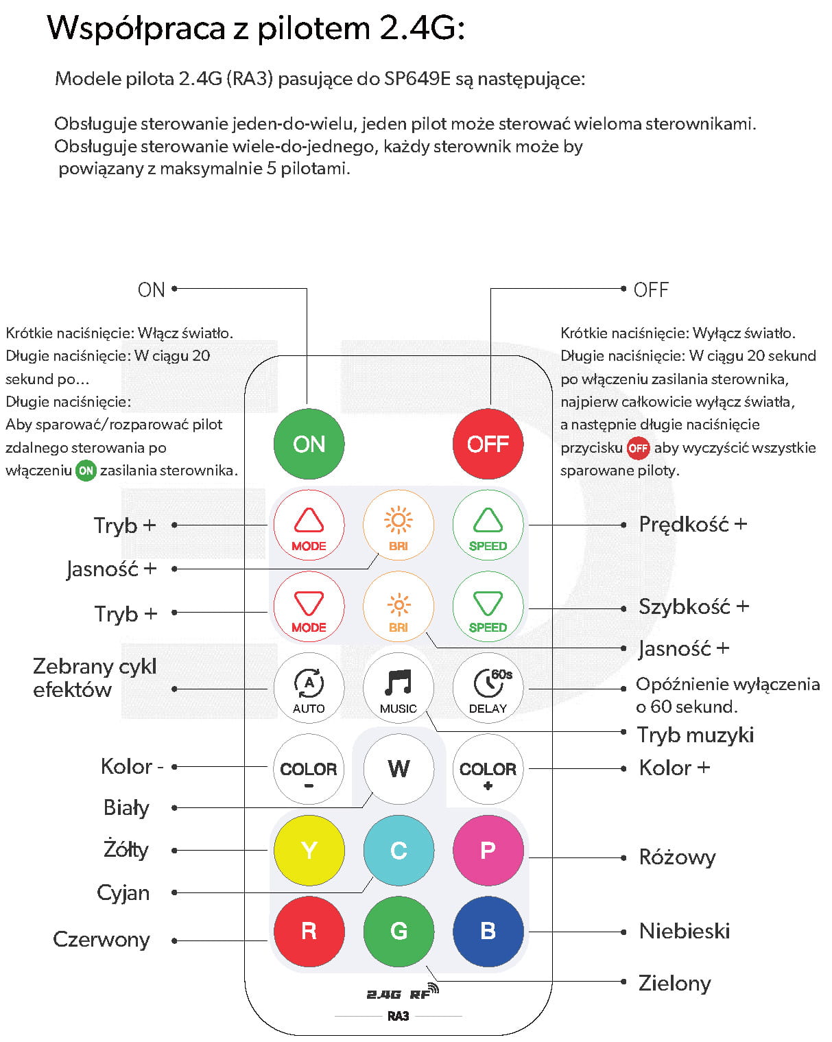 Funkcje: zmiana kolorów, regulacja jasności, tryby dynamiczne
