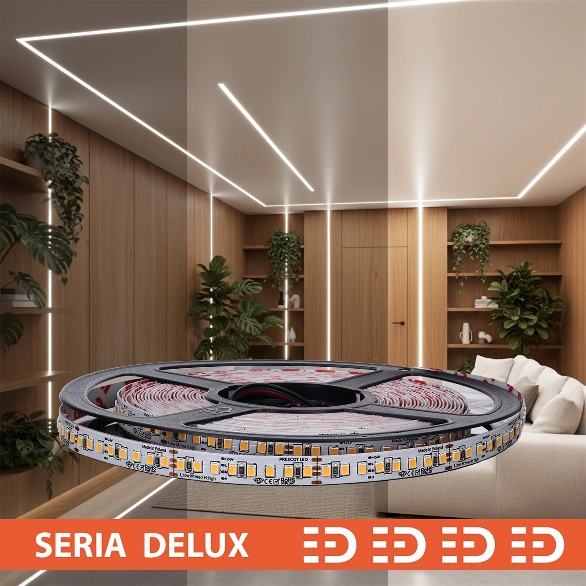 Odkryj naszą wszechstronną taśmę LED 3w1 z diodami SMD2835, którą w zależności od podłączenia emituje światło LOW, MEDIUM oraz HIGH. Jej wysoka wydajność, bardzo gęste rozmieszczenie diod oraz precyzyjne sortowanie gwarantują doskonałe oddawanie barw (Ra >, 80), co czyni ją idealnym rozwiązaniem zarówno do mocnego oświetlenia akcentującego, jak i dekoracyjnego. Wyprodukowana w Polsce, taśma nie tylko zapewnia wyjątkowy blask i widoczność, ale również najwyższą jakość wykonania. Doskonale sprawdzi się w architekturze wnętrz, meblarstwie, scenografii oraz reklamie, przyciągając uwagę swoim nowoczesnym designem