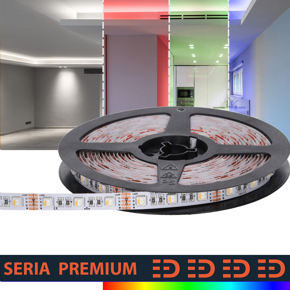 Możliwość zmiany barw poszerza dodatkowo walory aranżacyjne. Taśmy Premium sprawdzają się jako oświetlenie wybranych stref, na przykład blatu roboczego w kuchni, lustra w łazience czy podwieszonego sufitu w salonie. To produkt dla wszystkich tych, którzy szukają kompromisu między jakością i ceną. Dobre podłoża PCB na którym umieszczone są wyselekcjonowane diody LED to gwarancja niezawodności.