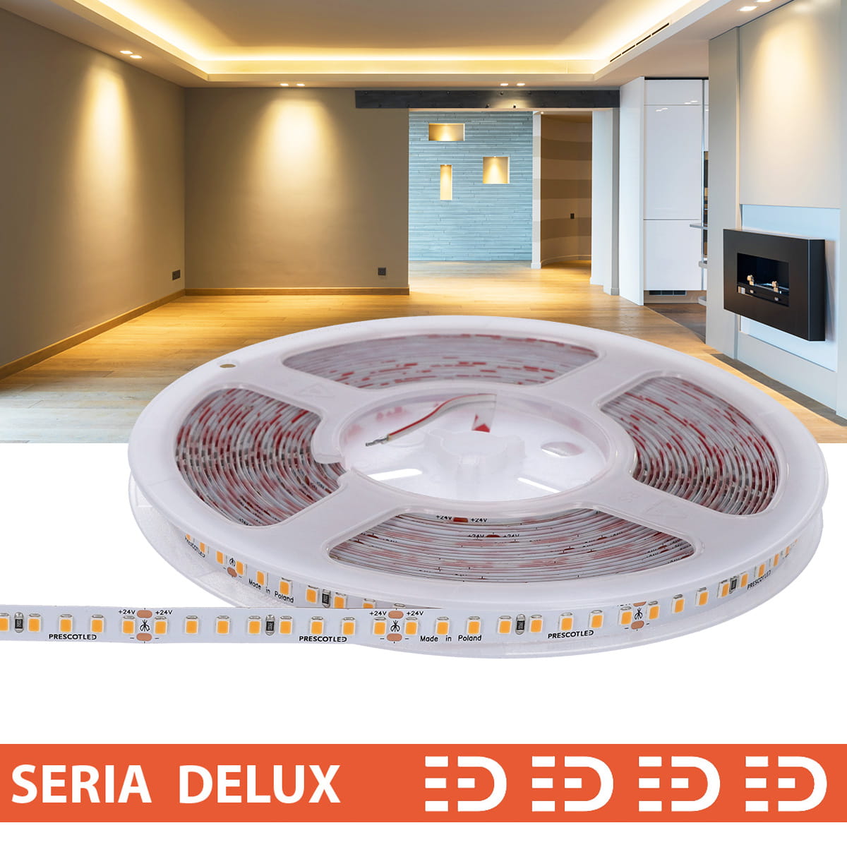 Taśma LED PL Delux CRI97 | Ciepła biała 3000K | 24V | 160 LED/m | 1000lm/m | SMD2835 | Rolka 10m | 7 lat gwarancji