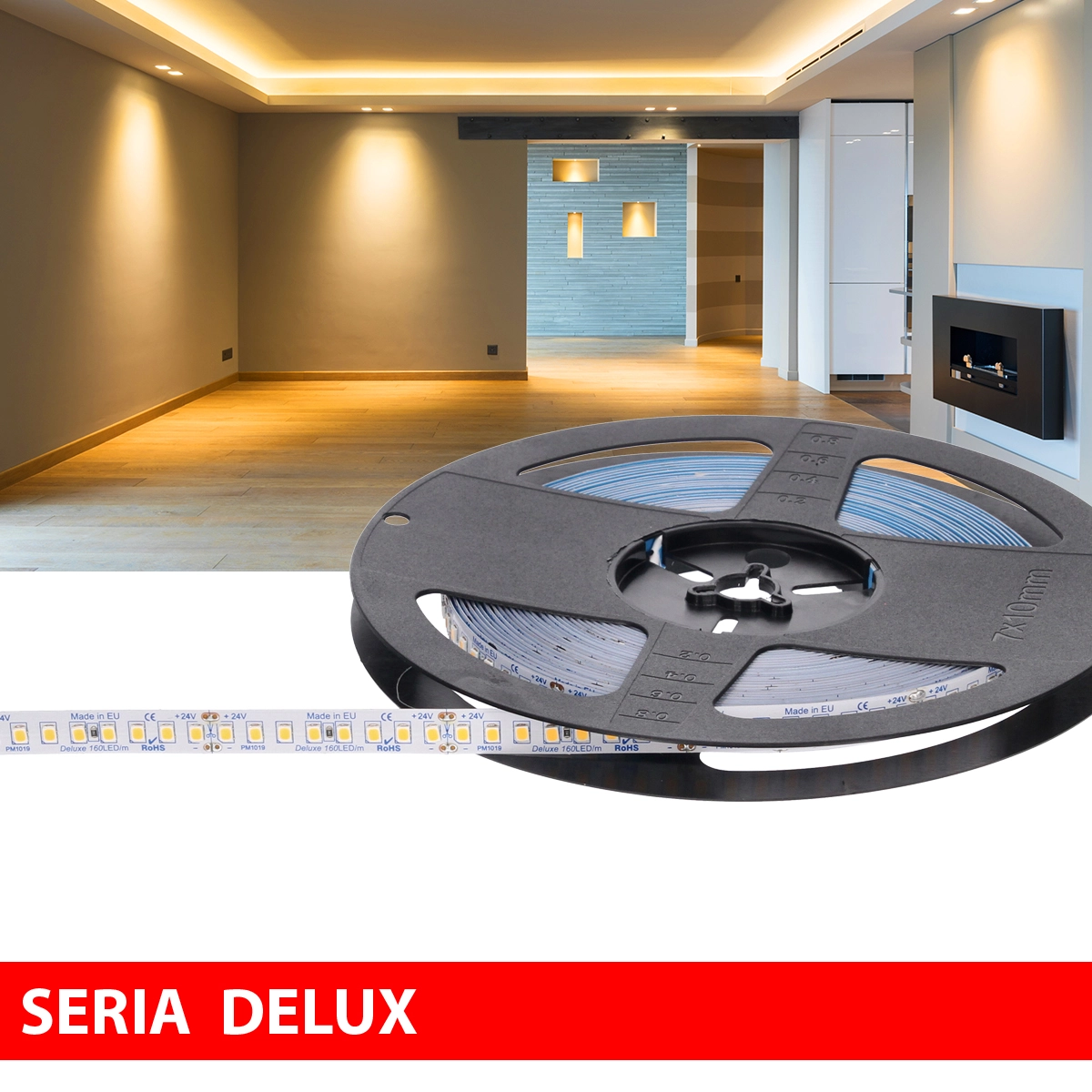 Taśma LED PL Delux Low Brightness | Ciepła biała 3000K | 24V | 160 LED/m | 450lm/m | SMD2835 | Rolka 10m | 7 lat gwarancji
